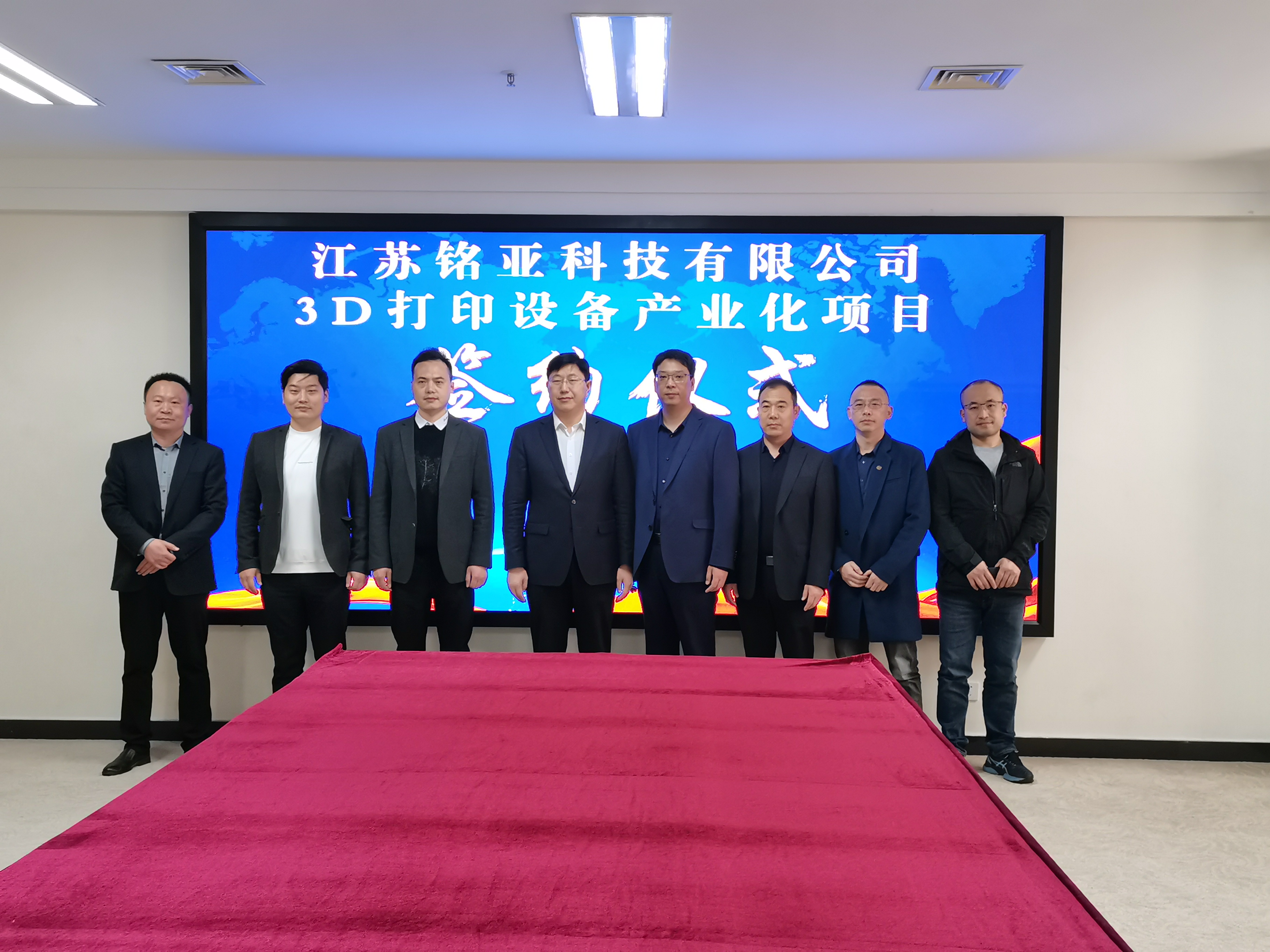 2021年3月16日,江苏省新沂市经济技术开发区与江苏铭亚科技有限公司举行3D打印设备产业化项目签约仪式。江苏省新沂市经济技术开发区管委会主任王晓东、江苏铭亚科技有限公司总经理刘一胜出席仪式。